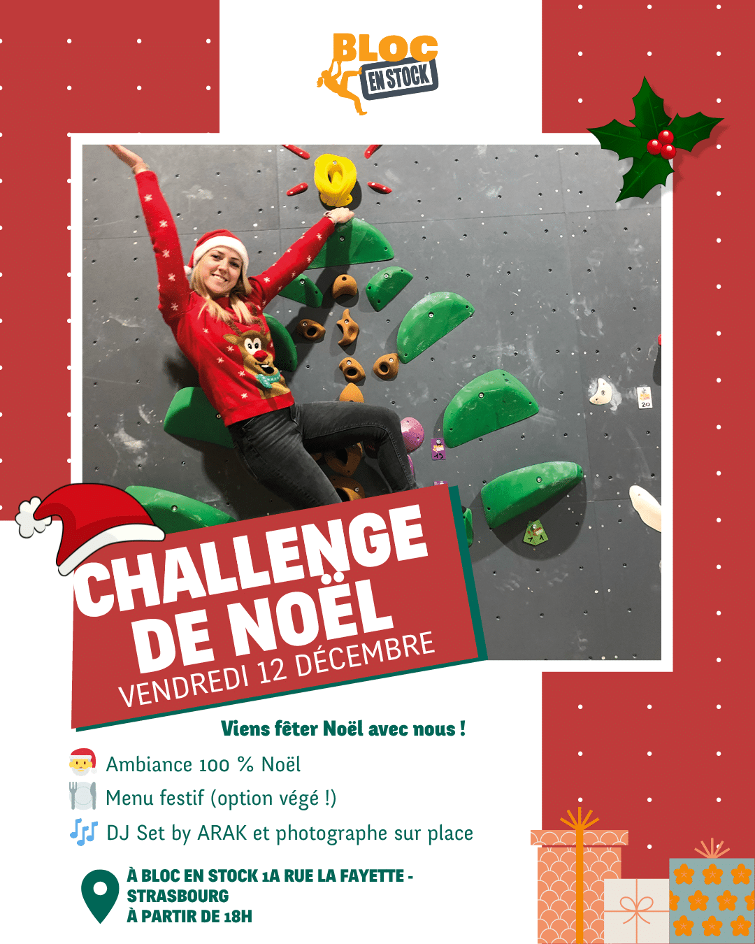 C’est reparti pour une soirée bien festive ! Le vendredi 12 décembre, prépare ton bonnet, ta magnésie et ton plus beau pull de Noël
